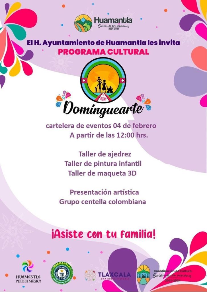 Con mucha alegría se vivirá una edición más de «Dominguearte» en este primer fin de semana de febrero, un programa impulsado por el H.Ayuntamiento de Huamantla a través de la Coordinación de Cultura municipal, con el objetivo de ofrecer espacios de diversión y convivencia familiar.