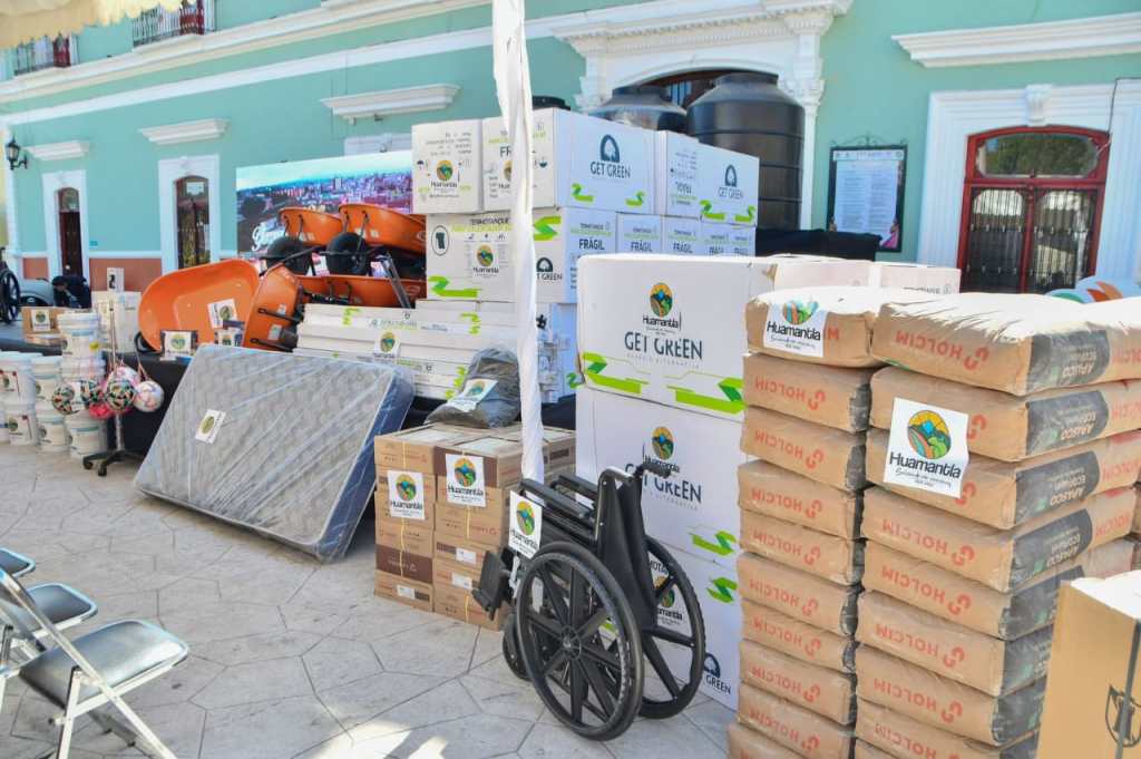 Este día, fueron entregados equipos de sonido, impresoras, carretillas, cemento, malla sombras, equipos de cómputo, láminas, mobiliario escolar, pisos, tripies para personas con diálisis, pintura, colchones, tinacos, calentadores solares, equipo deportivo, reflectores, muletas, entre otros apoyos.