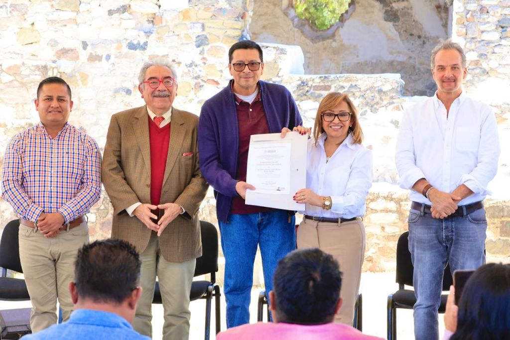 En cada uno de los actos protocolarios, la gobernadora entregó las constancias de conclusión de obra que otorga el gobierno federal en el caso del Ex convento de Santa María de las Nieves, al arqueólogo Ramón Santacruz Carro y para el templo de San Bartolomé Cuahuixmatlac, al portero 2023, Rafael Vega Mazatzi.
