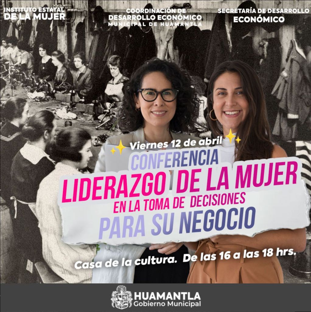El gobierno municipal de Huamantla, a través de la Coordinación de Desarrollo Económico y en conjunto con la Secretaría de Desarrollo Económico y el Instituto Estatal de la Mujer, invita a todas las mujeres emprendedoras del municipio a la conferencia «Liderazgo de la Mujer en la Toma de Decisiones para su Negocio”.
