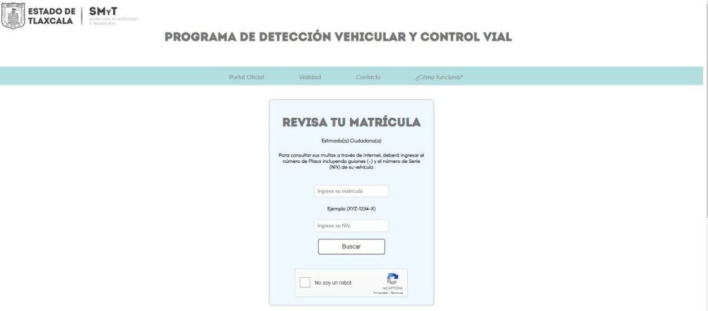 Luego de la puesta en marcha del Programa de Detección Vehicular y Control Vial para reducir los índices de siniestralidad en la entidad, la Secretaría de Movilidad y Transporte (SMyT) pone a disposición de la ciudadanía el portal https://monitor.smyt.tlaxcala.gob.mx/, a través del cual los automovilistas pueden consultar si fueron acreedores a una infracción por medio de dispositivos o medios tecnológicos.