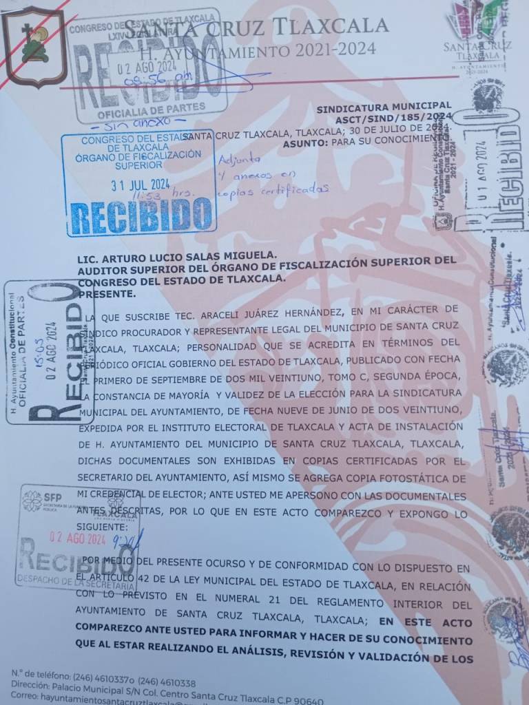 La representante legal del ayuntamiento también informó que ha presentado denuncias por falsificación de su firma autógrafa ante el Congreso del Estado y ante el Sistema Estatal Anticorrupción, y acudirá a la Fiscalía General de Justicia, de lo cual ha recabado las pruebas contundentes, pues lo ha notado en diversos documentos, incluidos en los de realización de obras.