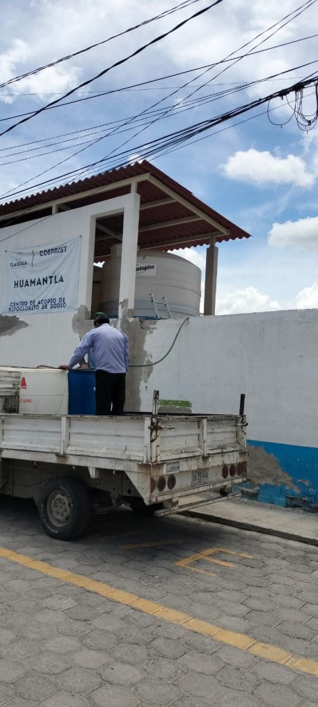Huamantla es centro de distribución regional de hipoclorito de sodio en convenio con COEPRIST, con la intención de dotar del producto a los comités de agua 💧 y municipios de la zona oriente del estado, a través de la Comisión de Agua Potable y Alcantarillado del Municipio de Huamantla.