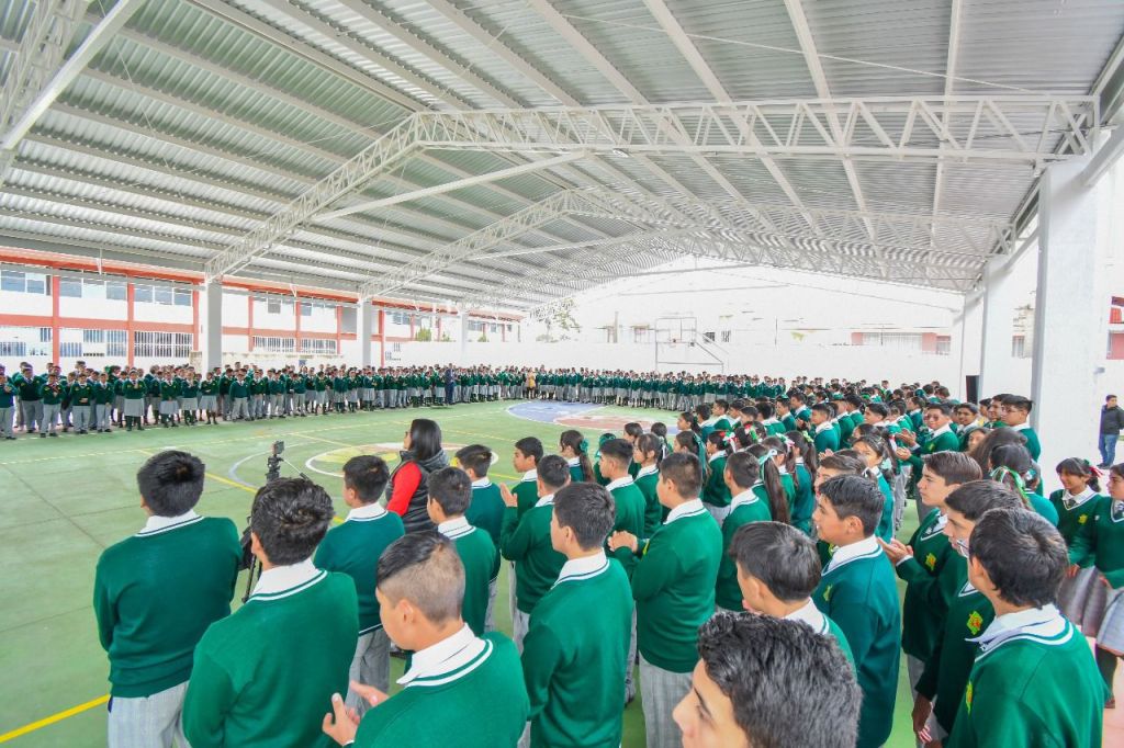 · Entregan autoridades municipales la construcción de una techumbre y canchas de usos múltiples en la escuela Secundaria General Justo Sierra.