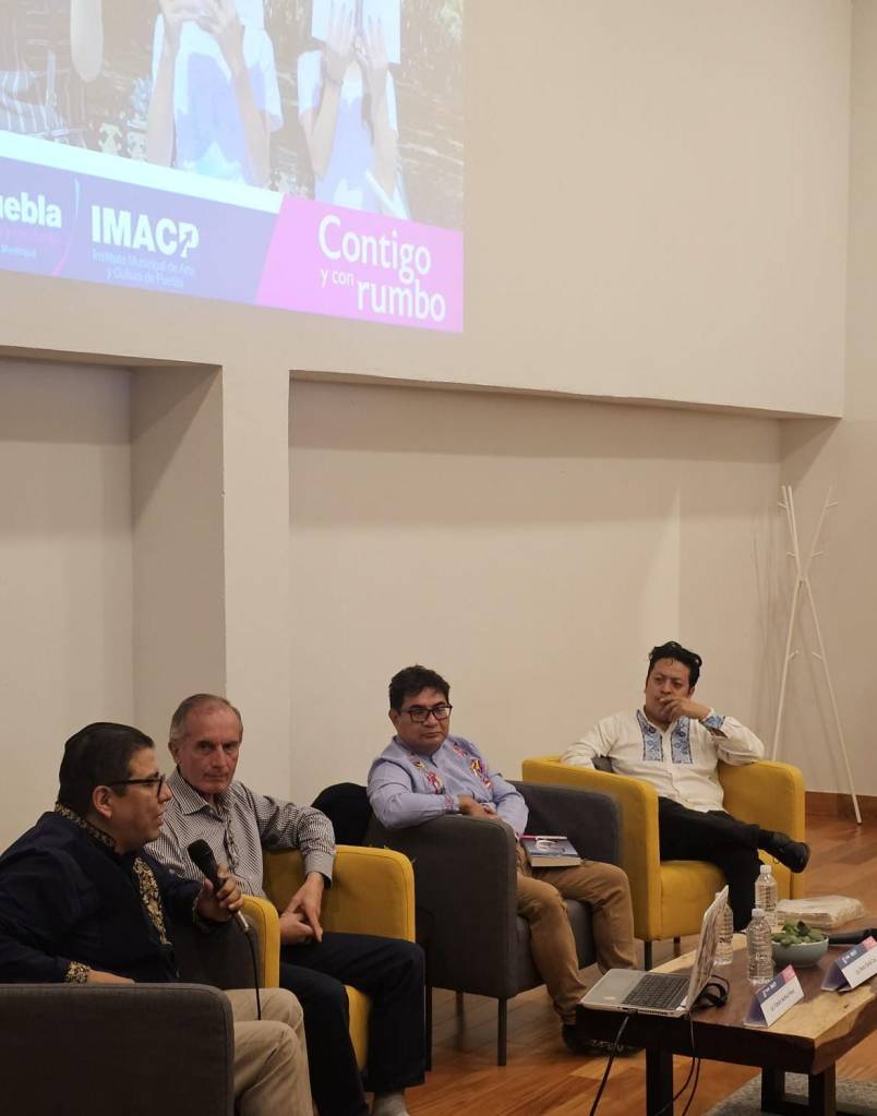 El director del Instituto Municipal de Arte y Cultura IMACP Fabián Valdivia, Pedro Sardá investigador y el Arqueólogo Arnulfo allende acompañaron al cronista poblano como comentaristas de la obra.