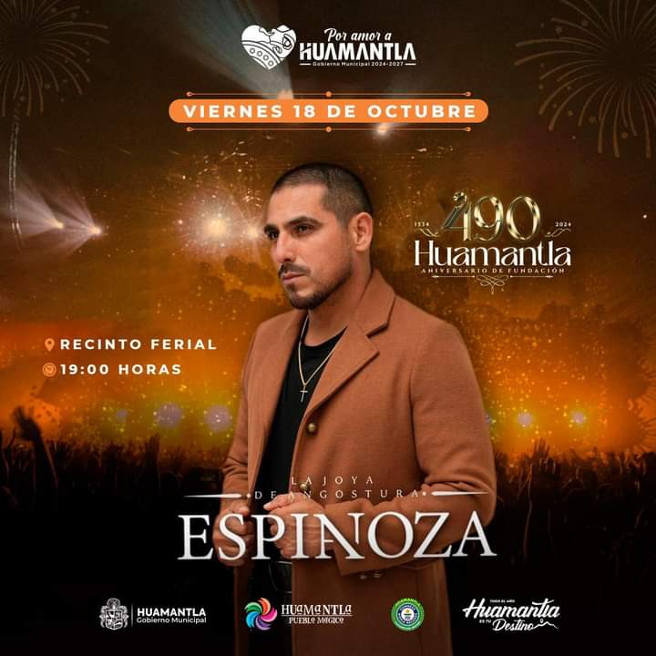 Ante la alta expectativa generada entre la población, y para establecer las condiciones de comodidad y seguridad que se requieren, el Ayuntamiento de Huamantla informó que el concierto gratuito del cantante Espinoza Paz se llevará a cabo el próximo viernes 18 de octubre en el Recinto Ferial, a partir de las 19:00 horas.