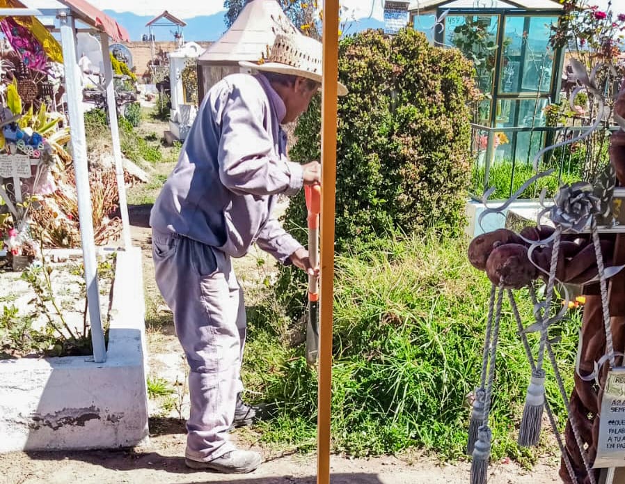 Los trabajos incluyen el mantenimiento y la limpieza de áreas comunes, la reparación de cercas y el cuidado de la vegetación, además del bacheo de vialidades que llevan al panteón de Santa Anita.