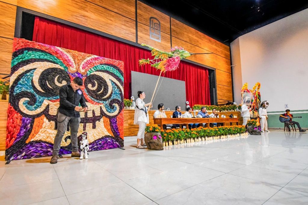 De lo que podremos encontrar en el Festival es Muros elaborados a base de Totomoxtle, “Los amorosos”, Tapete Aéreo, “umbrales”, portales, Alfombras y ofrenda de Cráneos en el quisco del municipio.