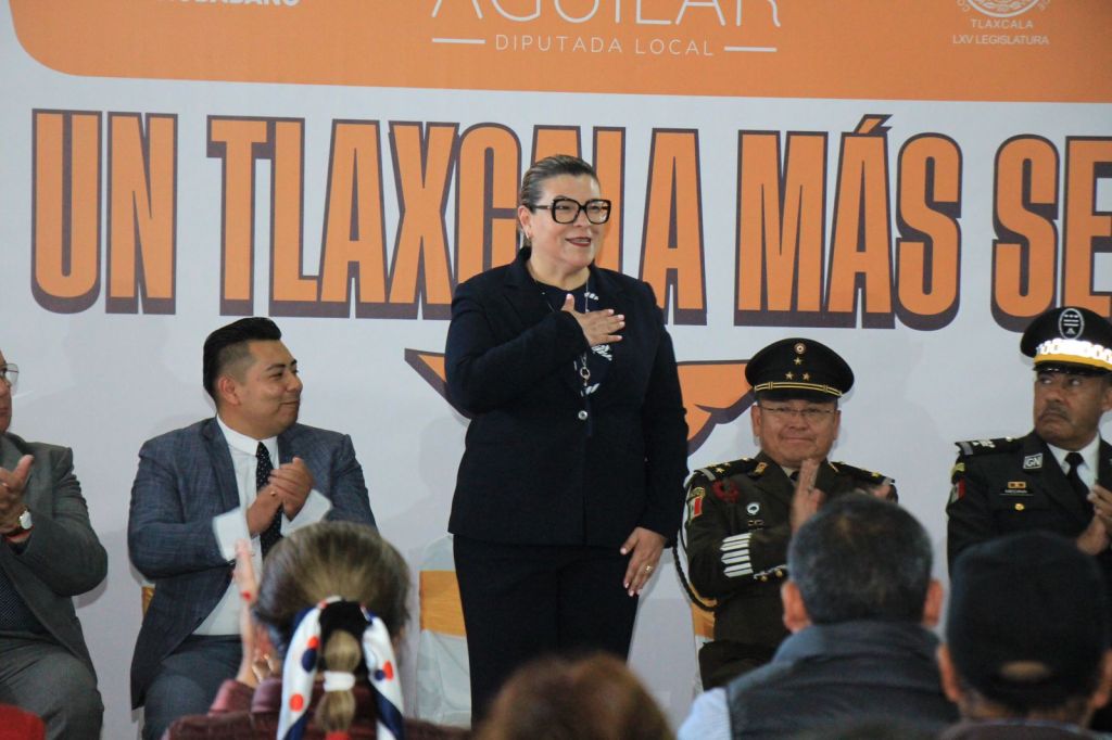 Durante su mensaje, la diputada Aguilar Vega destacó la importancia de crear un enlace directo entre autoridades municipales e instituciones de seguridad pública, militares y del Gobierno Estatal, trabajando de la mano con el Poder Legislativo para fortalecer la seguridad en Tlaxcala.