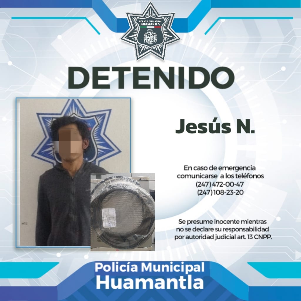 La Policía Municipal de Huamantla atendió un reporte que resultó en la detención de un hombre señalado por presuntamente sustraer cable de telecomunicaciones.