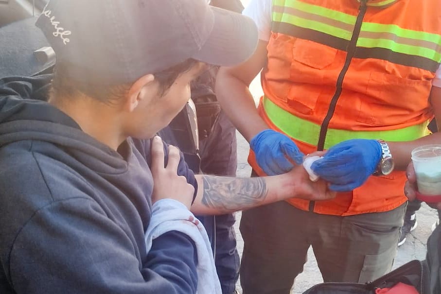 Tras valorar a la persona, los elementos de Protección Civil corroboraron que no se trató de lesiones que comprometieran su integridad al tratarse de un corte en la mano y otro a la altura del codo. En la revisión se pudo verificar que las lesiones fueron ocasionadas muy probablemente por un “cutter”, pues fueron muy finas, de ahí que la víctima no requirió mayor tratamiento médico.