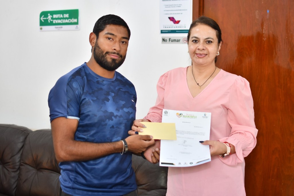 En representación del Presidente Municipal, Salvador Santos Cedillo, la Secretaria del Ayuntamiento, Luz María Calva Pimentel, entregó un estímulo económico que permitirá al maratonista enfrentar este nuevo reto deportivo.