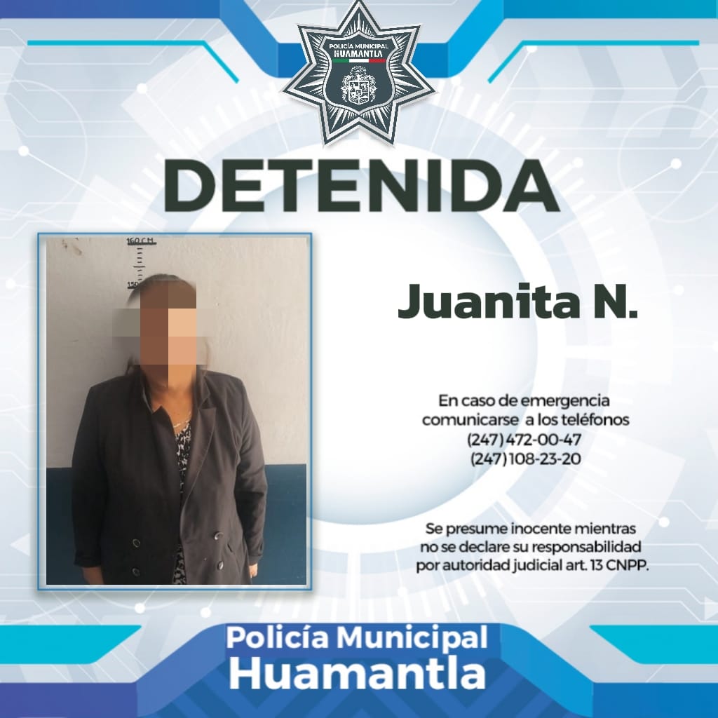 En el marco de los operativos permanentes de vigilancia, elementos de la Policía Municipal de Huamantla detuvieron a una mujer señalada por sustraer diversos productos de una tienda de conveniencia, quien tras su detención fue trasladada y puesta a disposición de las autoridades correspondientes para que definan su situación legal.