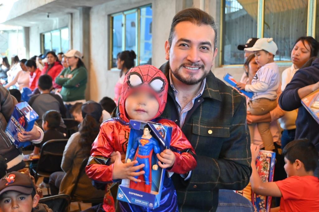 Ya en la colonia Nuevo San José Teacalco, Chava Santos agradeció que los Reyes Magos respondieran su carta para llevar a los menores de Huamantla juguetes y mucha felicidad.