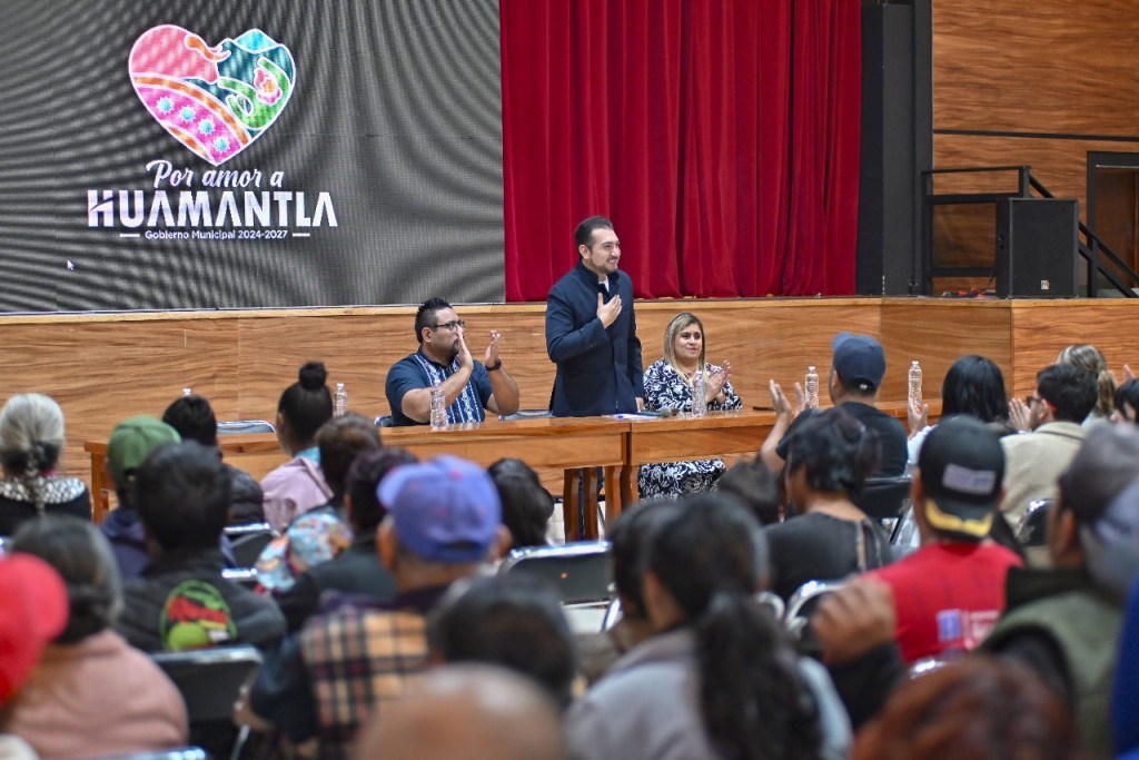 Durante la ceremonia, realizada este jueves en la Ex Cancha 13, el Alcalde dio la bienvenida al titular del Registro Civil y destacó la estrecha coordinación con el Gobierno del Estado para que más huamantlecos obtengan su acta de nacimiento.