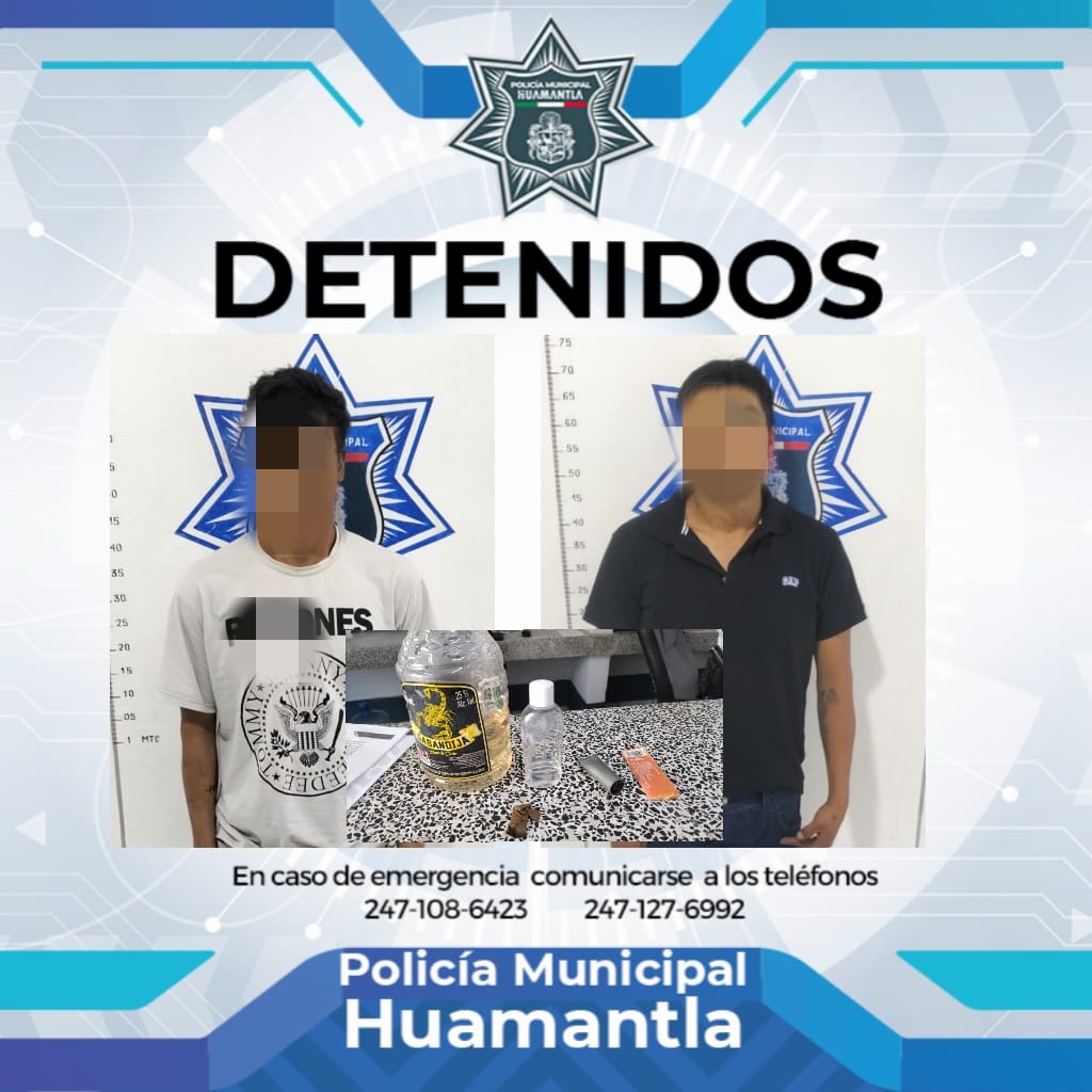 Como parte de los constantes operativos de vigilancia realizados en todo el municipio, este lunes elementos de la Policía Municipal de Huamantla detuvieron a Martín “N” y Jonathan “N” en el pueblo de Benito Juárez, por consumir sustancias nocivas en lugares públicos.