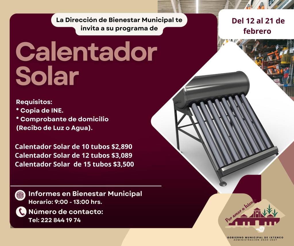 El Gobierno Municipal de Ixtenco, que encabeza Aline Lazo Caballero, en coordinación con Bienestar Municipal, ha puesto en marcha un programa de apoyo para la adquisición de tinacos, calentadores solares y carretillas a bajo costo, con el objetivo de mejorar las condiciones de vida de las familias del municipio.