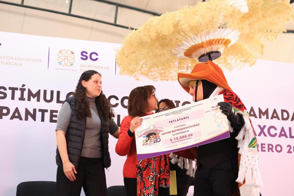 Al encabezar la Ceremonia de Entrega de Apoyos Económicos a las camadas participantes en el Carnaval Tlaxcala 2025, la gobernadora Lorena Cuéllar Cisneros afirmó que este tipo de ayudas permite que se promocione más esta tradición; además, para brindar un mejor espacio para sus bailes, se construye la Ciudad de la Cultura y Entretenimiento.