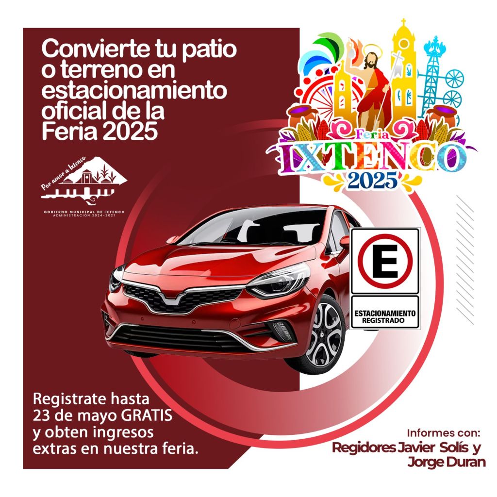 San Juan Ixtenco, Tlax., mayo de 2025. – Con el objetivo de ofrecer mayor seguridad y orden durante la próxima Feria Patronal en honor a San Juan, el Gobierno Municipal de Ixtenco, encabezado por Aline Lazo Caballero, lanzó una convocatoria para el registro gratuito de estacionamientos particulares.