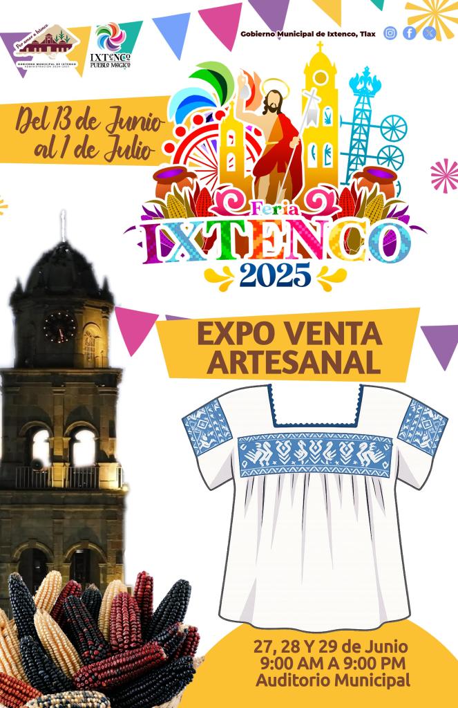 El Gobierno Municipal de Ixtenco, que encabeza Aline Lazo Caballero, a través de la Dirección de Cultura y Turismo, que dirige David Albañil Vásquez, invita con entusiasmo a la ciudadanía y visitantes a disfrutar de la Expo Venta Artesanal, que se realizará como parte de los eventos programados para la Feria Ixtenco 2025.