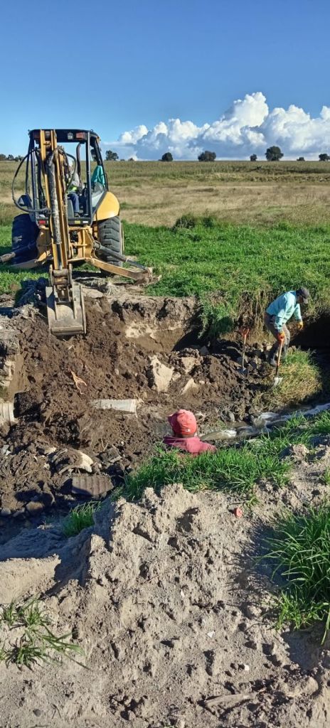 El personal operativo realiza la sustitución de tramos dañados, así como labores de limpieza y desazolve, con el objetivo de mejorar el flujo y prevenir futuras obstrucciones que afecten la red sanitaria.
