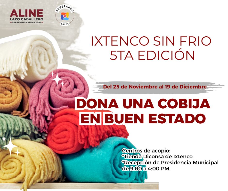 “Ixtenco Sin Frío” es una campaña creada por la hoy Presidenta Municipal, Aline Lazo Caballero, cuando aún se desempeñaba como regidora. La iniciativa surgió de manera personal, atendiendo a una necesidad que observó directamente en las familias más vulnerables del municipio. Con el paso del tiempo, la colecta se ha mantenido vigente y ha logrado consolidarse como una acción anual de apoyo comunitario.