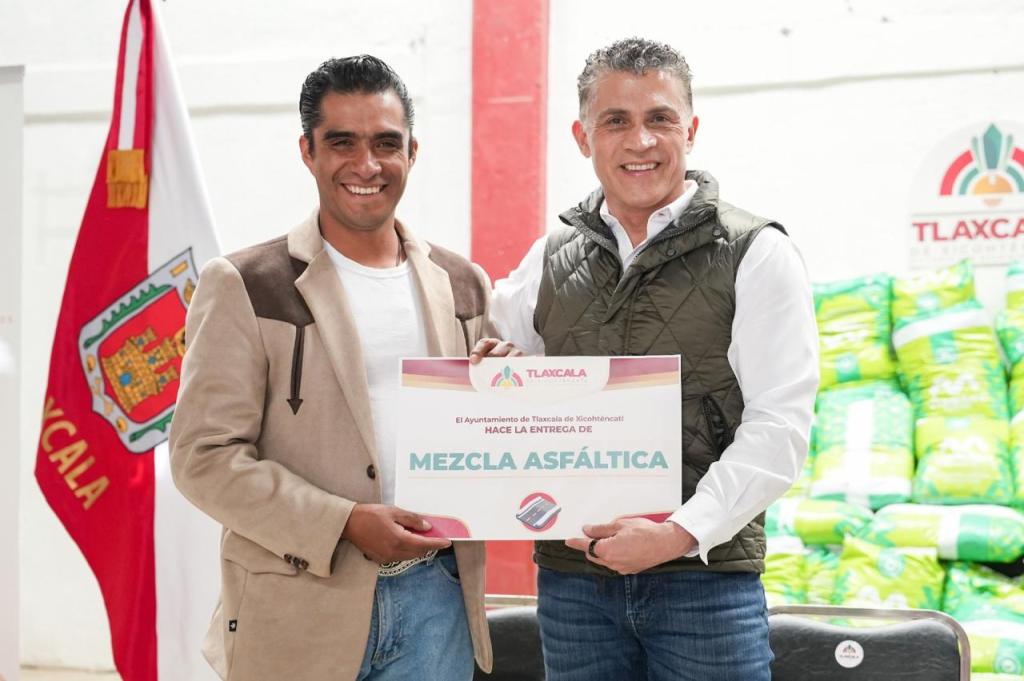 El presidente municipal de Tlaxcala, Alfonso Sánchez García, realizó la primera entrega de 50 toneladas de mezcla asfáltica en frío destinada a reforzar los trabajos de bacheo en 11 comunidades, delegaciones y la zona centro de la capital.