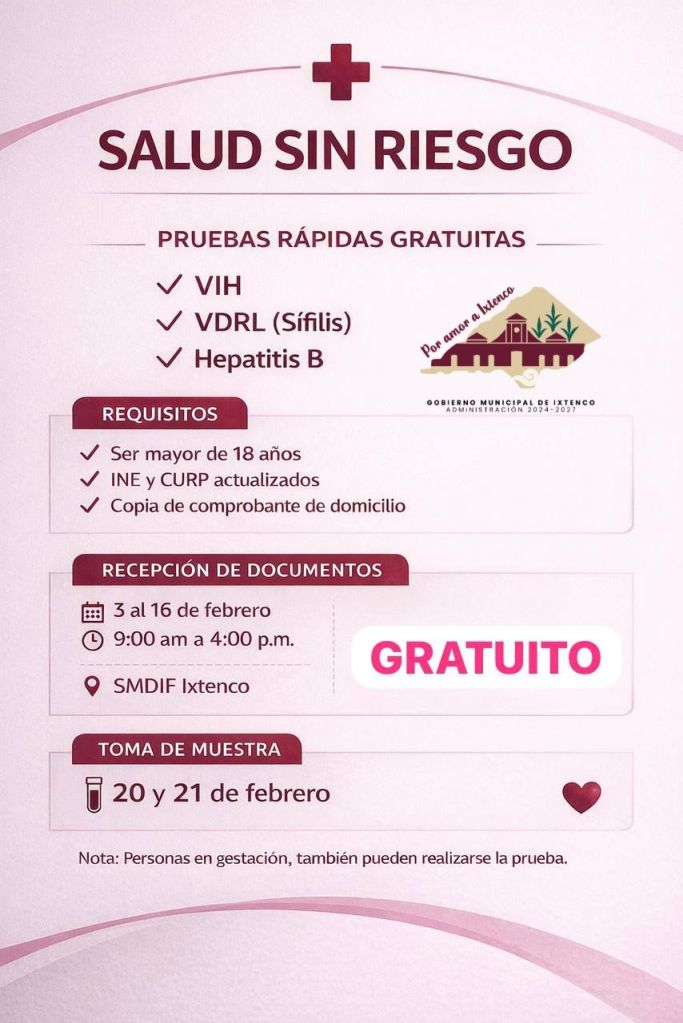 Ixtenco, Tlax. — Con el objetivo de fortalecer la prevención y el cuidado de la salud en el municipio, el Sistema Municipal DIF Ixtenco, en coordinación con el Gobierno Municipal, puso en marcha la campaña “Salud Sin Riesgo”, enfocada en la detección oportuna de enfermedades de transmisión sexual mediante pruebas rápidas.