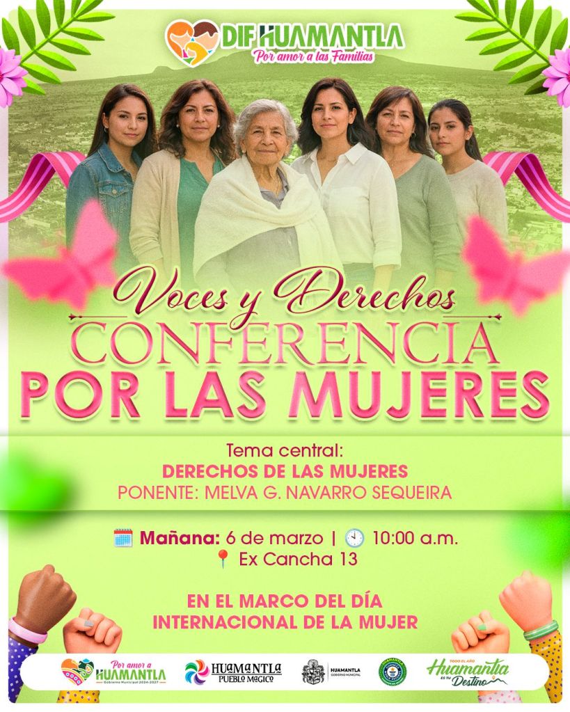 En el marco de las actividades conmemorativas por el Día Internacional de la Mujer, el Sistema Municipal para el Desarrollo Integral de la Familia (SMDIF) de Huamantla invita a la ciudadanía a participar en la conferencia “Voces y Derechos por las Mujeres”, un espacio de reflexión y diálogo sobre la importancia de garantizar y promover los derechos de las mujeres.